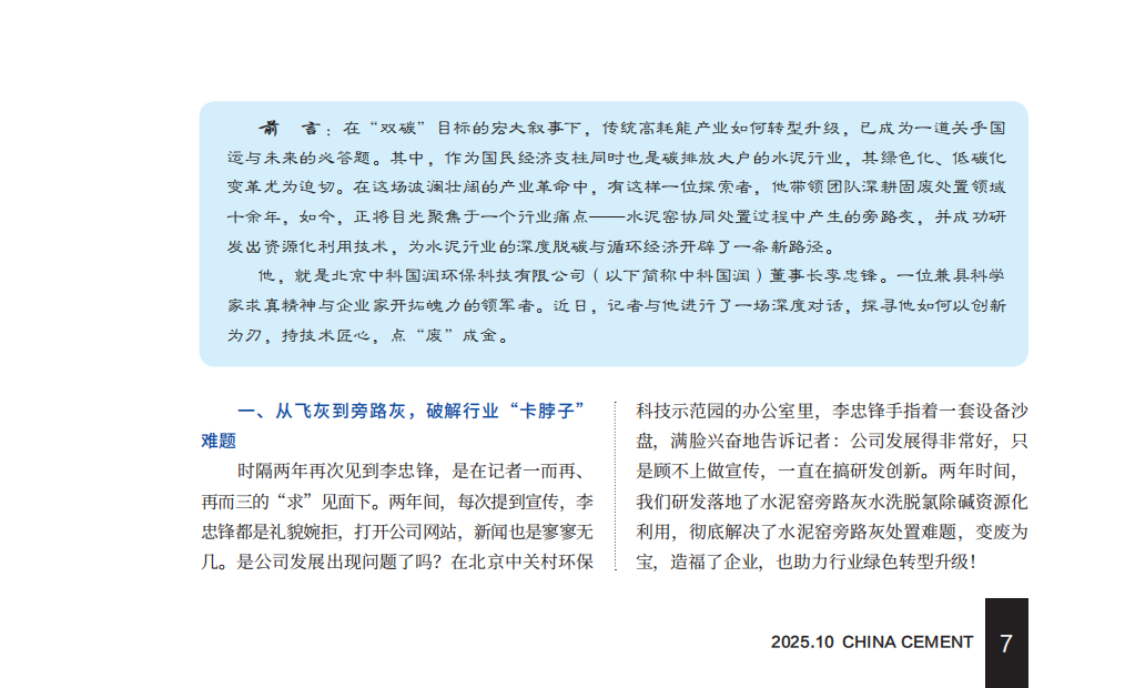 對話中科國潤李忠鋒:破解水泥窯旁路灰困局的技術(shù)匠心