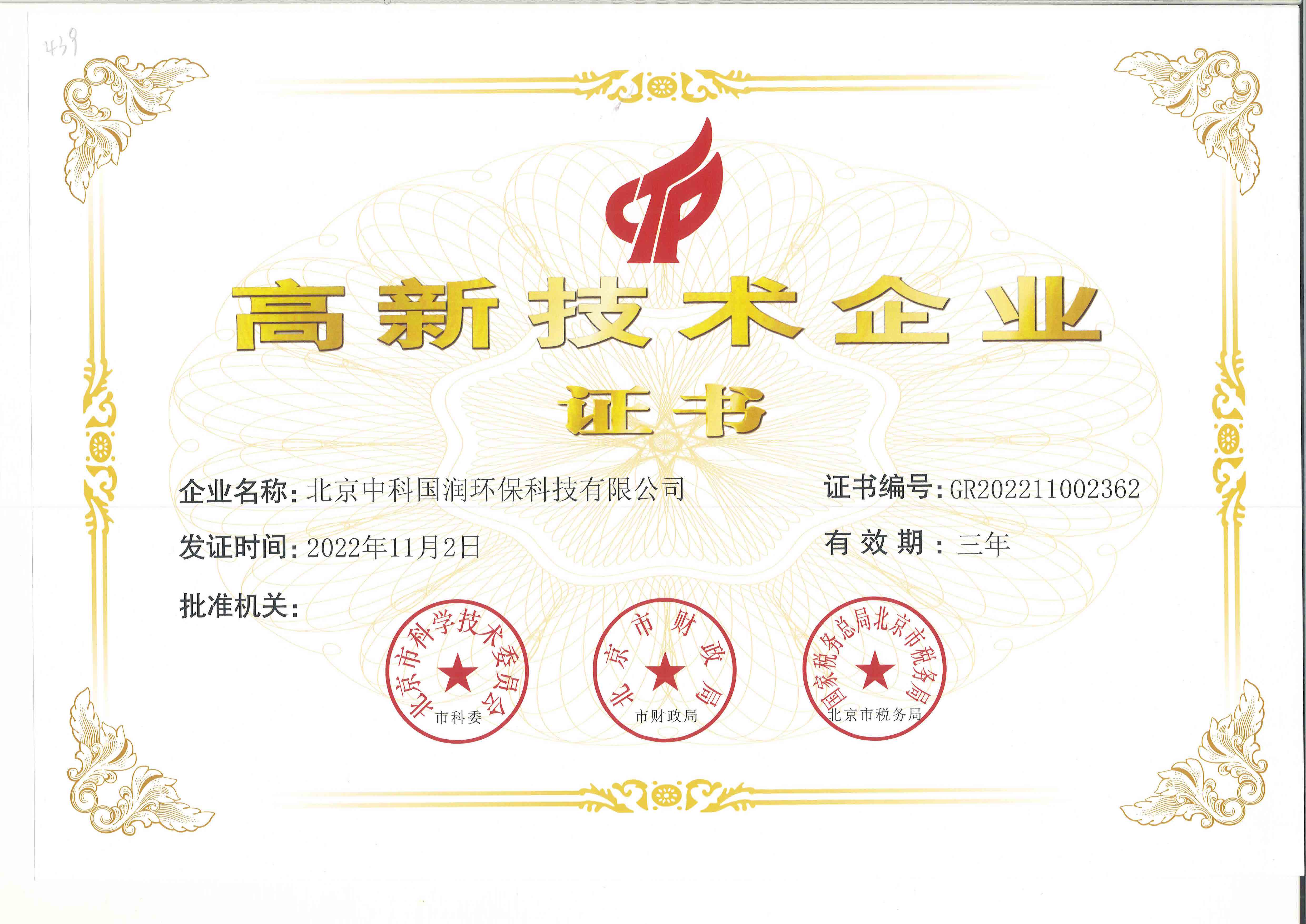 國家高新技術(shù)企業(yè)證書